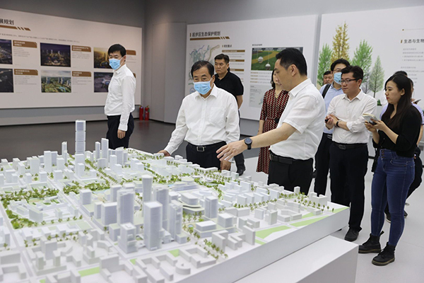 孫立成來到新舊動能轉(zhuǎn)換起步區(qū)城市展廳,實地察看起步區(qū)規(guī)劃編制情況,詳細(xì)了解生態(tài)保護(hù)、數(shù)字城市、綠色城市、城市交通、地下空間利用等方面的規(guī)劃建設(shè)情況,聽取了起步區(qū)建設(shè)實施方案落實情況的匯報。