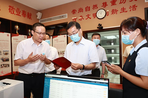 劉強(qiáng)一行察看了不動產(chǎn)辦證流動服務(wù)點(diǎn)現(xiàn)場,詳細(xì)了解不動產(chǎn)登記“云柜臺”“分鐘制”“全鏈條”改革等工作情況,強(qiáng)調(diào)要不斷優(yōu)化工作流程,提升為民服務(wù)水平。