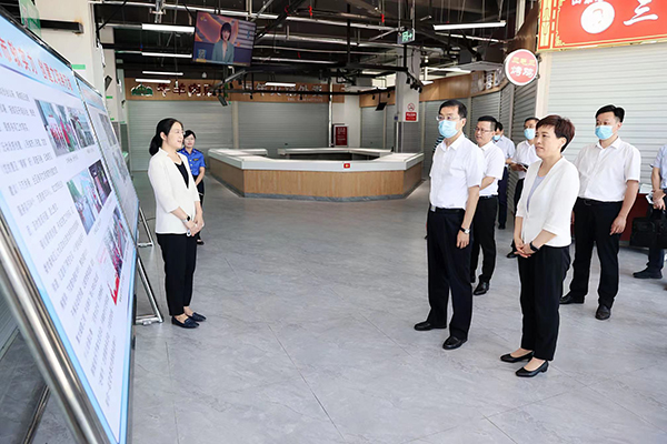 在汶源街道汶水路智慧農(nóng)貿(mào)市場,劉強(qiáng)一行察看了智慧農(nóng)貿(mào)市場規(guī)劃建設(shè)和經(jīng)營運(yùn)行情況。劉強(qiáng)指出,農(nóng)貿(mào)市場不僅是“菜籃子”供應(yīng)的重要場所,也是展示城市文明形象的重要窗口。要不斷探索創(chuàng)新,借助先進(jìn)平臺載體,提升規(guī)劃建設(shè)、經(jīng)營管理、環(huán)境整治水平,為廣大市民提供優(yōu)質(zhì)便捷服務(wù)。在聽取鋼城區(qū)全國文明典范城市創(chuàng)建、馬路市場整治等情況匯報(bào)后,劉強(qiáng)強(qiáng)調(diào),全國文明典范城市創(chuàng)建是我們常抓不懈的一項(xiàng)重點(diǎn)工作,是提升城市功能品質(zhì)的重要抓手。要堅(jiān)定不移貫徹以人民為中心的發(fā)展思想,切實(shí)把為民實(shí)事辦好,著力解決市民“急難愁盼”問題,不斷完善城市功能、提升城市品質(zhì),更好滿足群眾對美好生活的向往,推動全國文明典范城市創(chuàng)建取得實(shí)實(shí)在在成效。