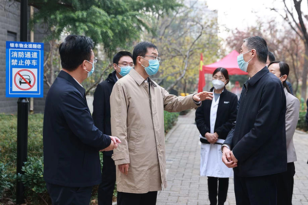 在銀豐山莊小區(qū),劉強察看了劃定為高風險區(qū)的樓棟管控服務措施落實情況,詳細詢問核酸檢測篩查、生活物資保障、值班人員執(zhí)勤等情況。劉強指出,要嚴格落實防控措施,統(tǒng)籌安排一線防控力量,保障好群眾正常生活。