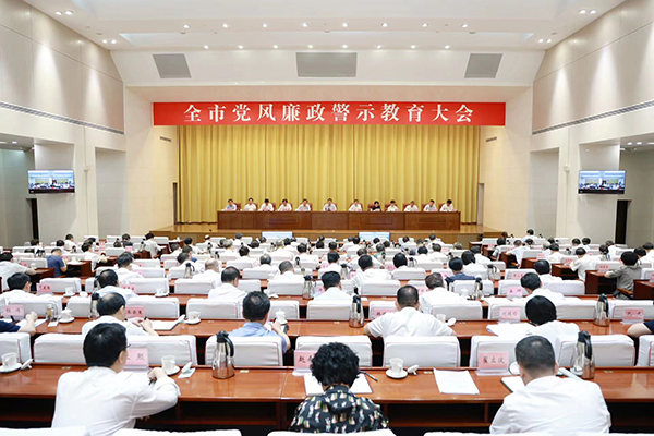 7月17日,全市黨風(fēng)廉政警示教育大會召開。會議深入學(xué)習(xí)貫徹習(xí)近平總書記關(guān)于黨的建設(shè)的重要思想,貫徹落實全省黨風(fēng)廉政警示教育大會精神,深化以案為鑒、以案示警、以案明紀(jì)、以案促改,縱深推進全面從嚴(yán)治黨,教育引導(dǎo)全市黨員干部筑牢拒腐防變思想防線,營造風(fēng)清氣正良好政治生態(tài)。