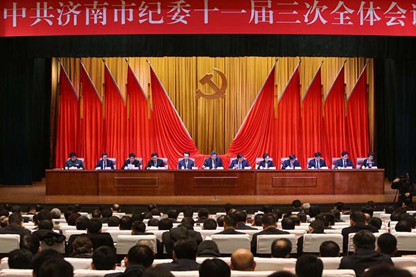 中共濟南市紀委十一屆三次全體會議于2月6日召開。會議高舉習近平新時代中國特色社會主義思想偉大旗幟,深入學習貫徹習近平總書記在十九屆中央紀委二次全會上的重要講話和中央紀委、省紀委全會精神,總結(jié)去年我市黨風廉政建設和反腐敗工作,部署今年任務,進一步推動黨的十九大精神貫徹落實。