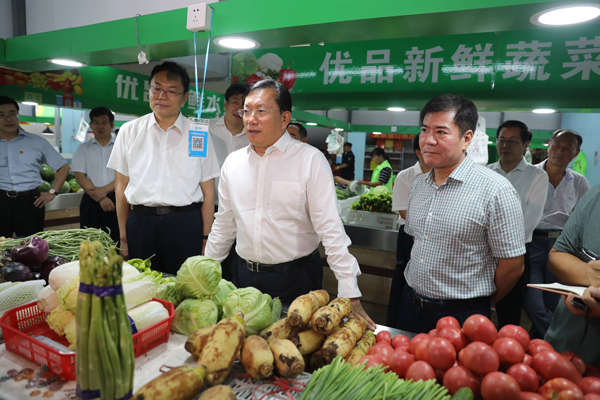 最后,王忠林來到錦屏街西頭的新菜宜園,察看便民綜合市場建設(shè)情況。新菜宜園是新建的菜市場,能容納300多個(gè)業(yè)戶經(jīng)營,服務(wù)周邊社區(qū)3萬多居民。目前進(jìn)場的業(yè)戶有很多曾在違建中及馬路上擺攤。王忠林與業(yè)戶、居民交談交流,了解前后對(duì)比變化。他還察看了市場農(nóng)殘檢測工作情況,要求建立可追溯的質(zhì)量監(jiān)督體系,打造安全放心、群眾滿意的市場。