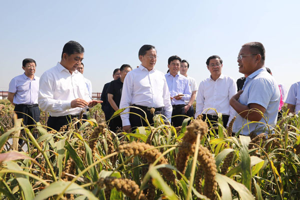 調(diào)研中,王忠林詳細了解秋糧豐收情況,與農(nóng)民群眾深入交流。得知當?shù)厍嘞嫁r(nóng)場的1000畝小米畝產(chǎn)達到700斤,且已借助網(wǎng)絡實體店打通銷路時,王忠林給予充分肯定,鼓勵大家搶抓秋收時機,扎實做好三秋生產(chǎn)工作。他強調(diào),要強化農(nóng)業(yè)科技服務,確保高標準高質(zhì)量全面完成秋收秋種任務;要加大宣傳力度,做好特色農(nóng)產(chǎn)品的品牌包裝與推廣推介;要提升農(nóng)產(chǎn)品加工水平,不斷提高農(nóng)產(chǎn)品附加值;要進一步打通農(nóng)產(chǎn)品線上線下銷售渠道,加大扶持力度,努力增加農(nóng)民收入;要在精細化種植的同時,做到精細化管護,合理預留邊溝、種植行道樹,通過地通溝、溝通渠、渠通河,實現(xiàn)農(nóng)田的旱澇保收;要鼓勵發(fā)展休閑觀光農(nóng)業(yè),做優(yōu)做強農(nóng)產(chǎn)品品牌,把農(nóng)產(chǎn)品深加工作為提升農(nóng)產(chǎn)品品質(zhì)、增加農(nóng)民收入的重要抓手,引導龍頭企業(yè)帶動農(nóng)戶發(fā)展適度規(guī)模經(jīng)營,進一步促進農(nóng)業(yè)提質(zhì)增效、農(nóng)民增收致富。