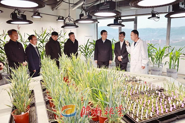 劉強(qiáng)來(lái)到泉脈農(nóng)業(yè)科技有限公司,察看了小麥“核不育”育種項(xiàng)目,了解新型第三代雜交小麥育種情況;在山東舜豐生物科技有限公司,深入了解植物基因編輯技術(shù)產(chǎn)業(yè)化項(xiàng)目進(jìn)展情況;在山東奧克斯畜牧種業(yè)有限公司,察看了奶牛種質(zhì)創(chuàng)新與高效擴(kuò)繁研發(fā)情況;在山東唐王鯉農(nóng)業(yè)發(fā)展有限公司,察看了錦鯉養(yǎng)殖玻璃溫室運(yùn)轉(zhuǎn)、錦鯉遺傳育種等情況。在山東省農(nóng)業(yè)科學(xué)院,劉強(qiáng)察看了農(nóng)業(yè)農(nóng)村部天敵昆蟲(chóng)重點(diǎn)實(shí)驗(yàn)室、新食品資源加工重點(diǎn)實(shí)驗(yàn)室和畜禽遺傳繁育與疫病防控重點(diǎn)實(shí)驗(yàn)室、小麥玉米國(guó)家工程研究中心,深入了解生物綠色防控、奶牛分子育種、新食品資源研發(fā)生產(chǎn)、小麥高效育種等情況。