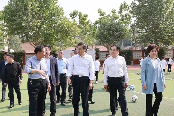 濟(jì)南市輔仁學(xué)校根據(jù)學(xué)生不同年齡段特點(diǎn)開(kāi)展足球教學(xué)和課外活動(dòng),由職業(yè)隊(duì)退役教練執(zhí)教,建立了水平一至水平四共4支分齡足球隊(duì)伍。劉強(qiáng)來(lái)到學(xué)校觀看了學(xué)生足球訓(xùn)練課和校隊(duì)訓(xùn)練展示,了解教練隊(duì)伍建設(shè)、學(xué)生隊(duì)伍建設(shè)、校園足球課程開(kāi)發(fā)等情況,鼓勵(lì)學(xué)生們積極參加體育運(yùn)動(dòng),鍛煉身體、增強(qiáng)體質(zhì),實(shí)現(xiàn)德智體美勞全面發(fā)展。濟(jì)南市甸柳第一小學(xué)將足球項(xiàng)目納入到體育課程中,學(xué)校足球隊(duì)多次獲得濟(jì)南市中小學(xué)生足球聯(lián)賽冠軍,多名學(xué)生入選國(guó)家少年隊(duì),獲評(píng)全國(guó)校園足球特色學(xué)校。劉強(qiáng)到學(xué)校體育場(chǎng)觀看了學(xué)生足球訓(xùn)練、比賽和足球課展示,了解足球場(chǎng)地建設(shè)、足球梯隊(duì)建設(shè)等情況。他指出,要積極探索創(chuàng)新,鼓勵(lì)引導(dǎo)職業(yè)體育資源與學(xué)校共享,持續(xù)提升校園足球發(fā)展水平。濟(jì)南一中是山東省體育傳統(tǒng)項(xiàng)目學(xué)校、傳統(tǒng)足球強(qiáng)校,連續(xù)多年在全市范圍內(nèi)招收足球特長(zhǎng)生,被命名為全國(guó)青少年校園足球特色學(xué)校。劉強(qiáng)到學(xué)校足球場(chǎng)觀看了足球隊(duì)訓(xùn)練展示、分組對(duì)抗比賽,了解校園足球開(kāi)展、足球文化傳播等情況。在濟(jì)南一中校史館,劉強(qiáng)聽(tīng)取了學(xué)生講解員的講解,深入了解辦學(xué)歷史、人才培養(yǎng)、教育教學(xué)等情況。他鼓勵(lì)學(xué)生們好好讀書(shū)學(xué)習(xí)、積極鍛煉身體,熱愛(ài)偉大祖國(guó),熱愛(ài)中華民族,將來(lái)為實(shí)現(xiàn)中華民族偉大復(fù)興而奮斗。