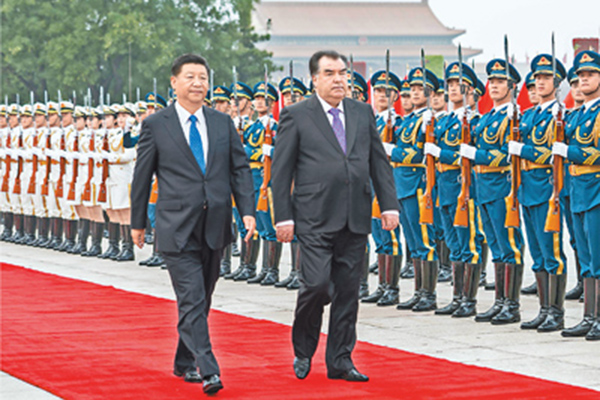 拉赫蒙表示,中國是塔吉克斯坦的好鄰居、好伙伴、好兄弟。建交25年來,塔中關(guān)系取得長足發(fā)展,雙方在政治、經(jīng)濟(jì)、人文各領(lǐng)域建立起緊密關(guān)系。兩國本著平等互利原則,開展了卓有成效的經(jīng)貿(mào)投資合作。塔方積極支持絲綢之路經(jīng)濟(jì)帶建設(shè)合作,愿同中方一道,深挖兩國合作潛力,擴(kuò)大金融、農(nóng)業(yè)、水利、產(chǎn)能、能源、礦業(yè)、科技園區(qū)、交通運(yùn)輸互聯(lián)互通等領(lǐng)域合作。塔方重視密切同中方教育、文化、青年、地方交流,愿加強(qiáng)兩國在地區(qū)和國際問題上的協(xié)調(diào)及執(zhí)法、安全合作。塔方將全力支持中方履行好上海合作組織輪值主席國職責(zé)。